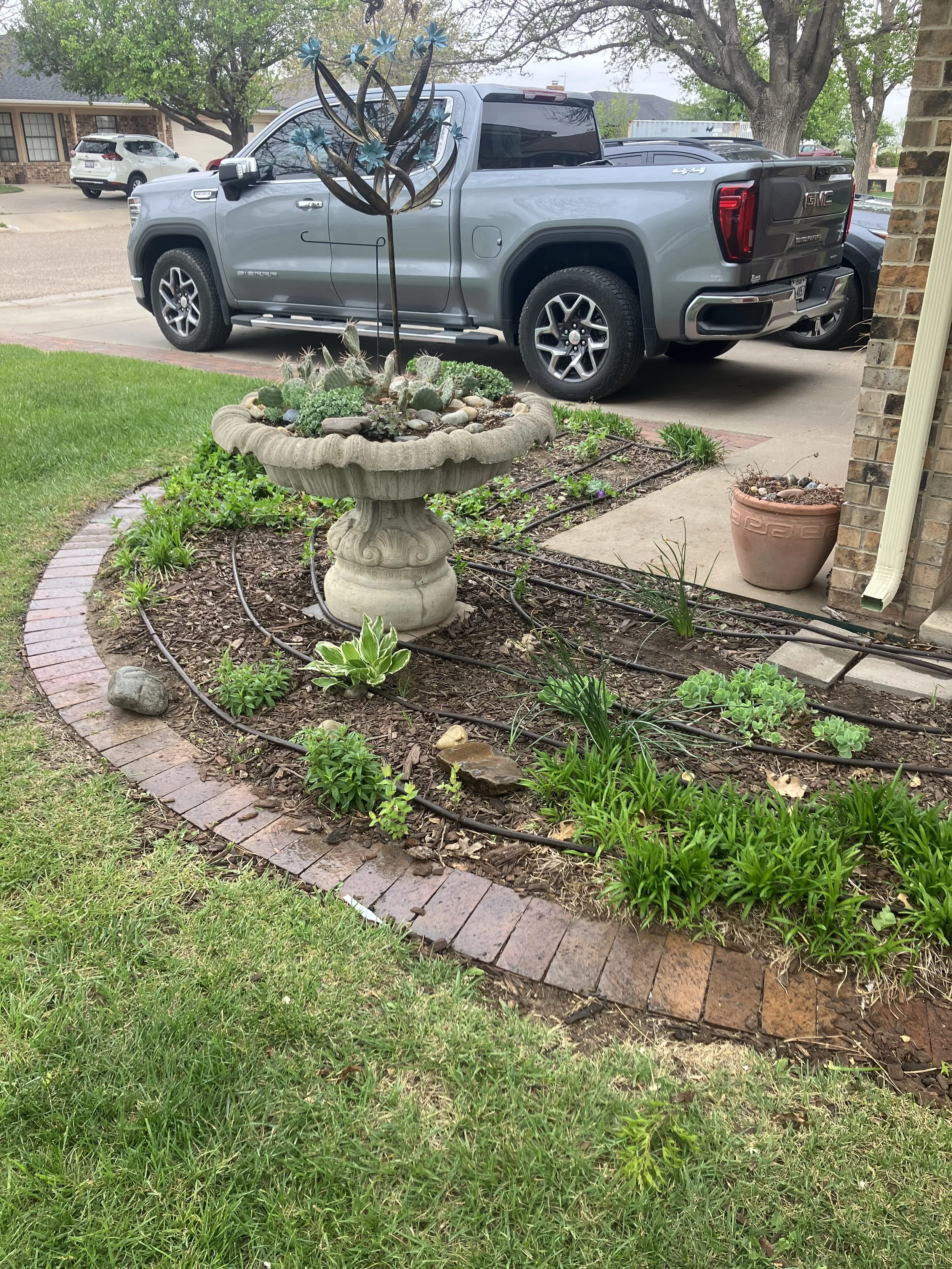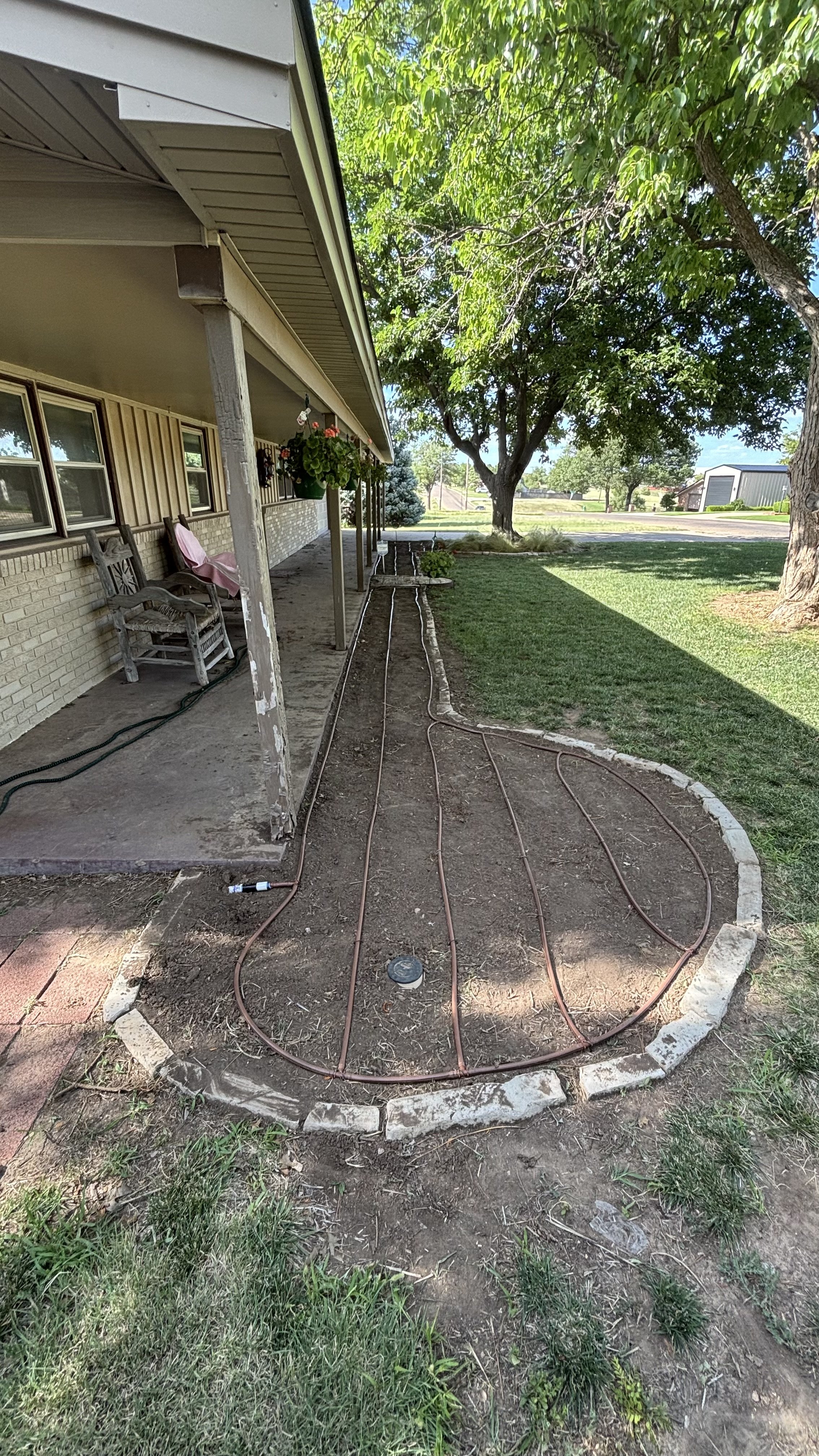 Drip system installed in flowerbed. Flowerbed now has proper coverage. (Completed in Pampa, TX)